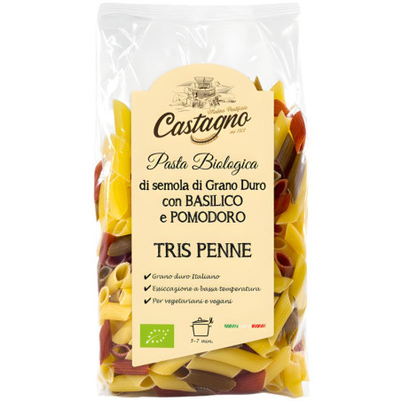 Sémola de trigo duro*, albahaca deshidratada* (1%), tomate deshidratado* (0,7%), remolacha deshidratada*.